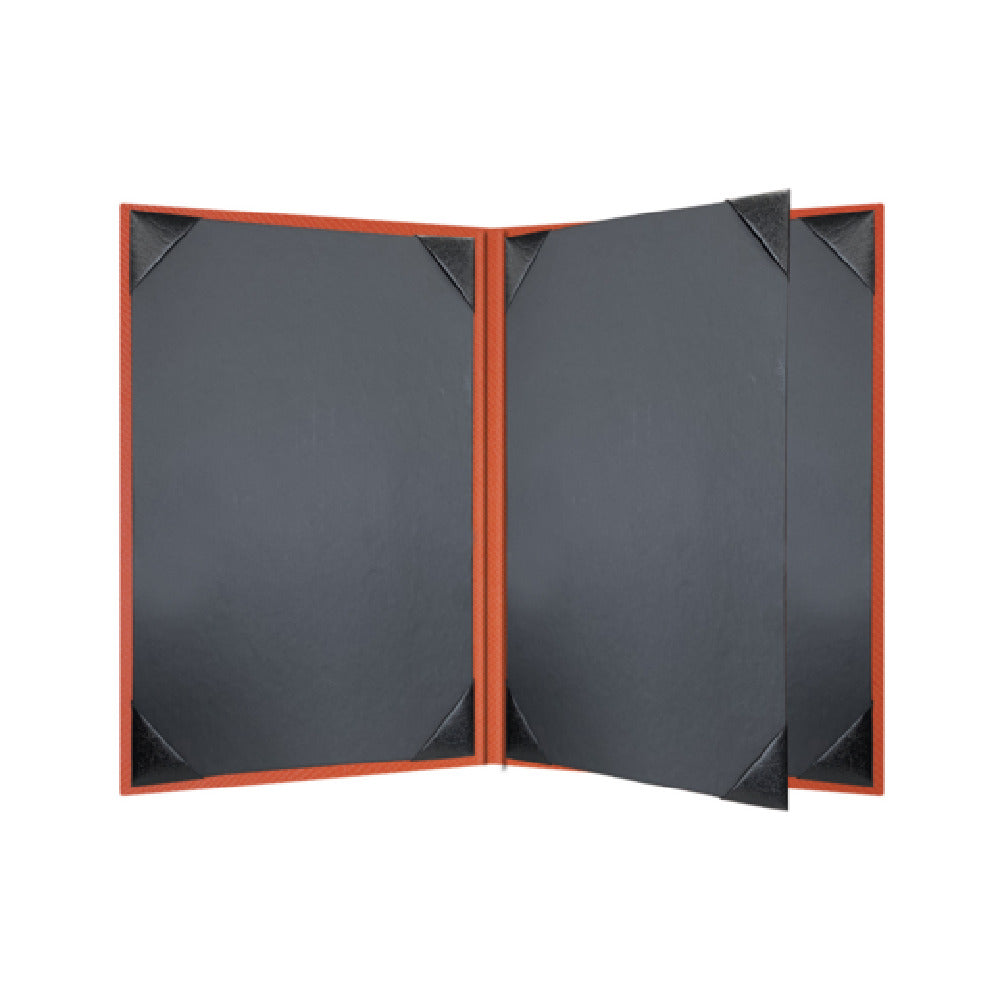 Risch, RIO-4V 5.5X8.5, Rio hardback reptilian pattern Menu Cover (specify color), 5-1/2" x 8-1/2", booklet, 4 view, black cards with black album style corner tabs to hold menu inserts, Made in USA (minimum order 25 each) (Packed By: 25 Each Per Case)