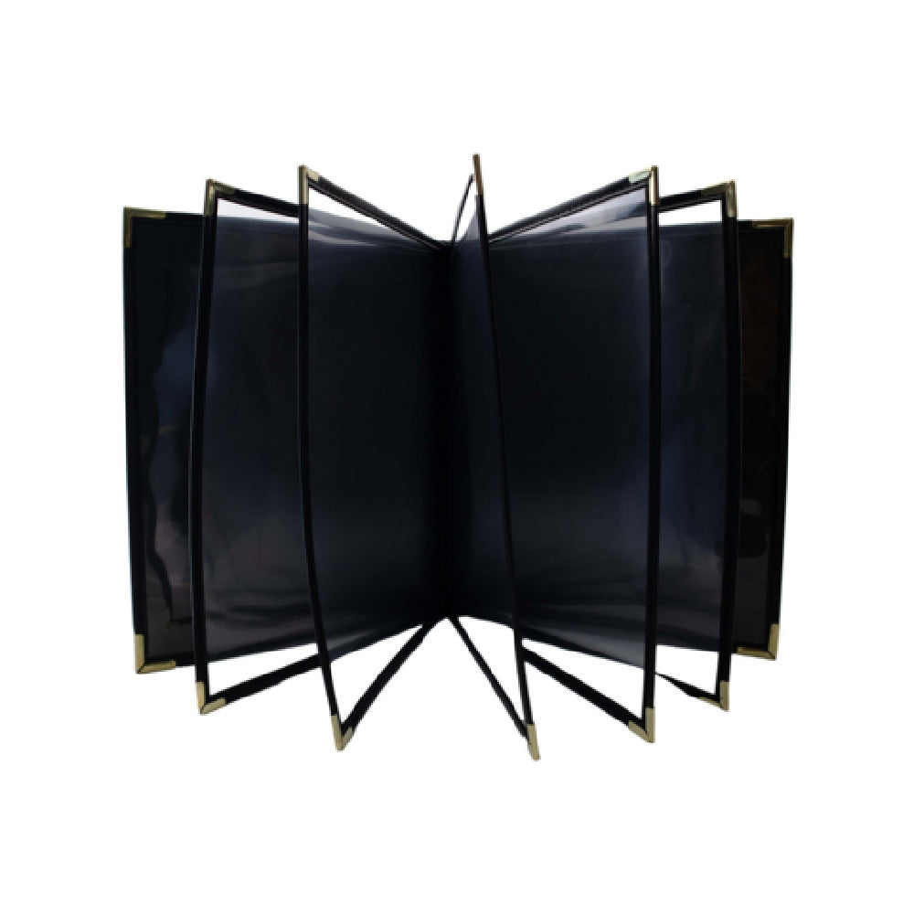 Risch, SEV-12V 5.5X8.5, Seville hardback antibacterial/antimicrobial faux-leather Menu Cover (specify color), 5-1/2" x 8-1/2", booklet, 12 view, stitched leatherette binding, metal corners (specify color), clear vinyl pockets to hold menu inserts, Made in USA (minimum order 25 each) (Packed By: 25 Each Per Case)