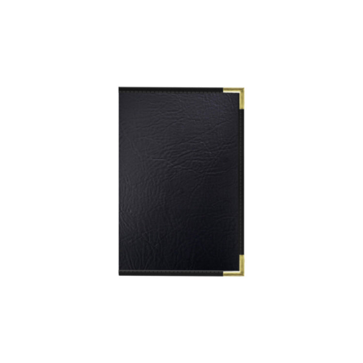 Risch, SEV-4V 5.5X8.5, Seville hardback antibacterial/antimicrobial faux-leather Menu Cover (specify color), 5-1/2" x 8-1/2", booklet, 4 view, stitched leatherette binding, metal corners (specify color), clear vinyl pockets to hold menu inserts, Made in USA (minimum order 25 each) (Packed By: 25 Each Per Case)