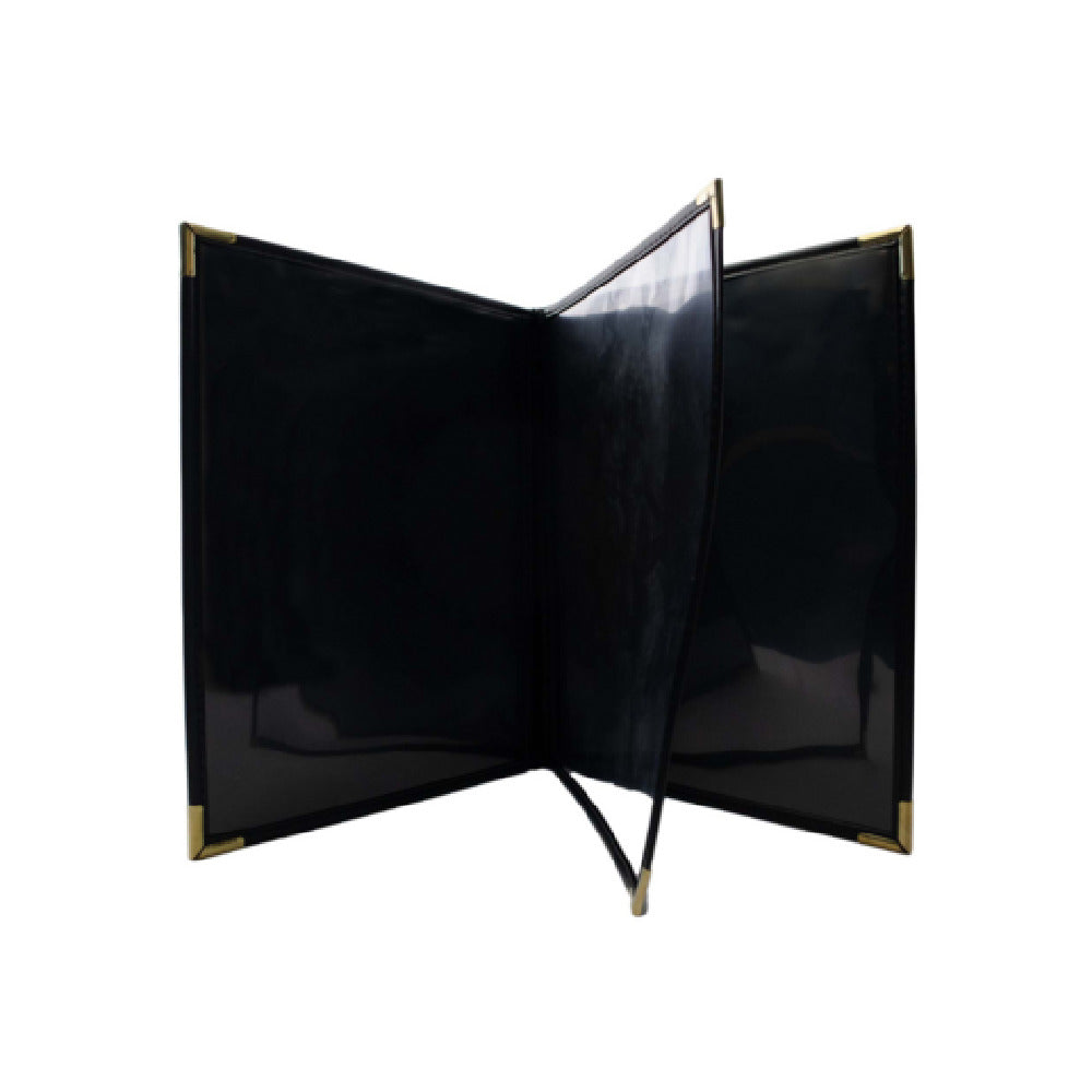 Risch, SEV-4V 8.5X14, Seville hardback antibacterial/antimicrobial faux-leather Menu Cover (specify color), 8-1/2" x 14", booklet, 4 view, stitched leatherette binding, metal corners (specify color), clear vinyl pockets to hold menu inserts, Made in USA (minimum order 25 each) (Packed By: 25 Each Per Case)