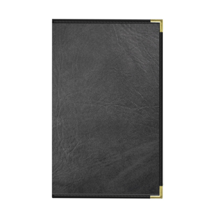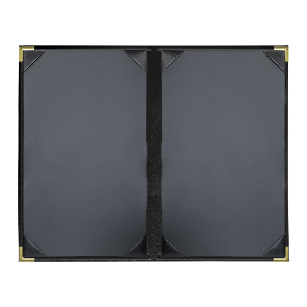 Risch, SEVDX-2V 8.5X14, Seville Deluxe hardback antibacterial/antimicrobial faux-leather Menu Cover (specify color), 8-1/2" x 14", double, 2 view, stitched leatherette binding, metal corners (specify color), black cards with black album style corner tabs to hold menu inserts, Made in USA (minimum order 25 each) (Packed By: 25 Each Per Case)
