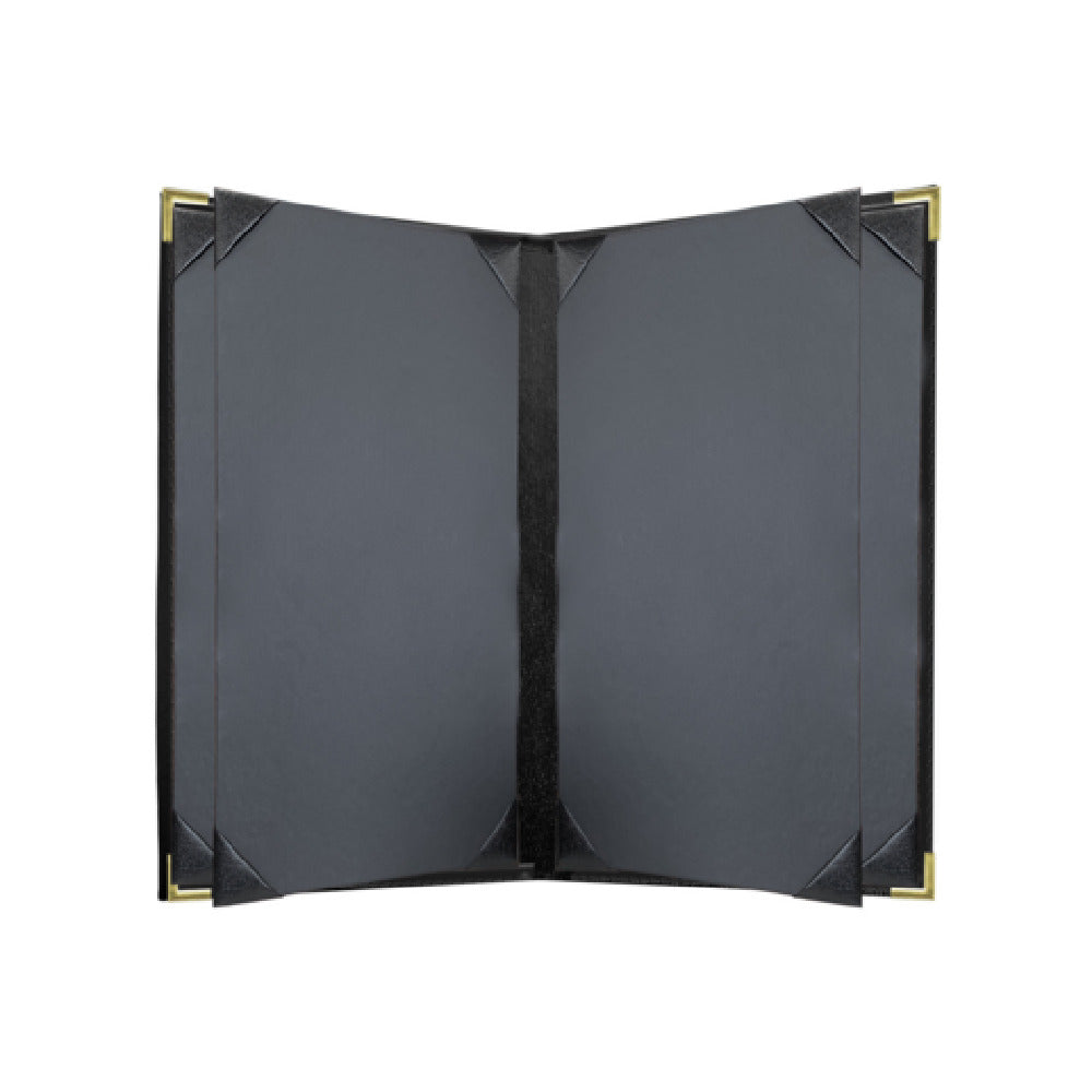 Risch, SEVDX-6V 8.5X14, Seville Deluxe hardback antibacterial/antimicrobial faux-leather Menu Cover (specify color), 8-1/2" x 14", booklet, 6 view, stitched leatherette binding, metal corners (specify color), black cards with black album style corner tabs to hold menu inserts, Made in USA (minimum order 25 each) (Packed By: 25 Each Per Case)