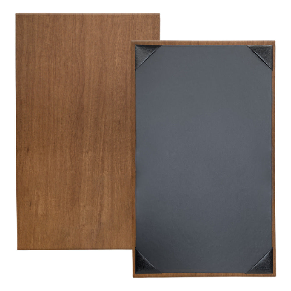 Risch, SHERWOOD-1V 8.5X14, Sherwood hardback faux-wood Menu Cover (specify color), 8-1/2" x 14", single, 1 view, black cards with black album style corner tabs to hold menu insert, Made in USA (minimum order 25 each) (Packed By: 25 Each Per Case)