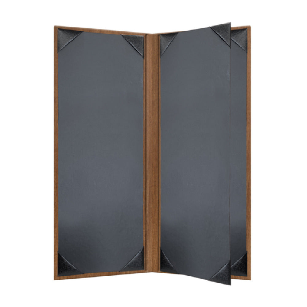 Risch, SHERWOOD-4V 4.25X11, Sherwood hardback faux-wood Menu Cover (specify color), 4-1/4" x 11", booklet, 4 view, black cards with black album style corner tabs to hold menu inserts, Made in USA (minimum order 25 each) (Packed By: 25 Each Per Case)