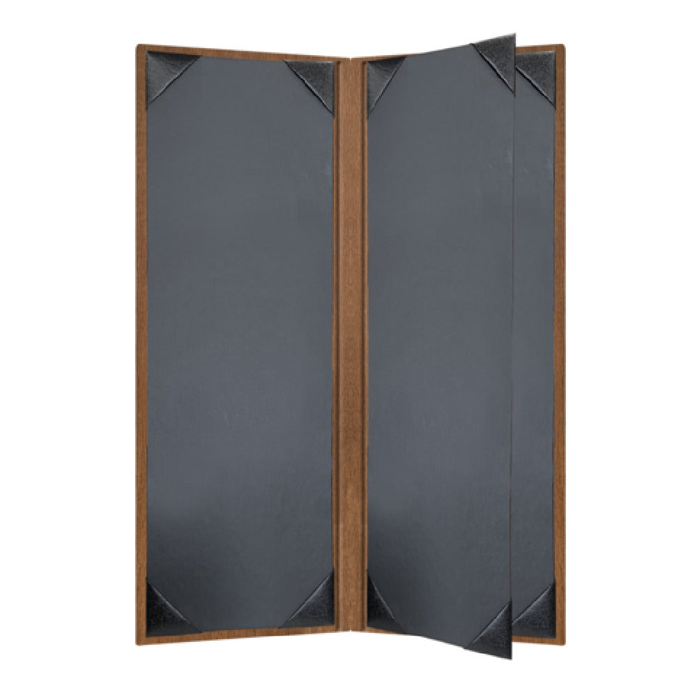 Risch, SHERWOOD-4V 4.25X14, Sherwood hardback faux-wood Menu Cover (specify color), 4-1/4" x 14", booklet, 4 view, black cards with black album style corner tabs to hold menu inserts, Made in USA (minimum order 25 each) (Packed By: 25 Each Per Case)