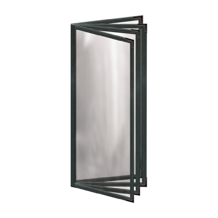 Risch, TEDD 4.25X11-NYLON, Deluxe Sewn Nylon Menu Cover (specify color), 4-1/4" x 11", 4 page 8 view booklet, double stitched binding, clear or matte finish vinyl (specify), metal decorative or smooth corners (specify), Made in USA (minimum order 24 each) (Packed By: 24 Each Per Case)