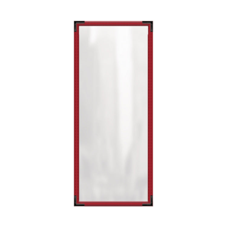 Risch, TES 4.25X11, Deluxe Clear Sewn Menu Cover, 4-1/4" x 11", single, 2 view, turned in edge, reinforced binding with matching thread, double stitched, metal decorative corners, Made in USA (minimum order 24 each)