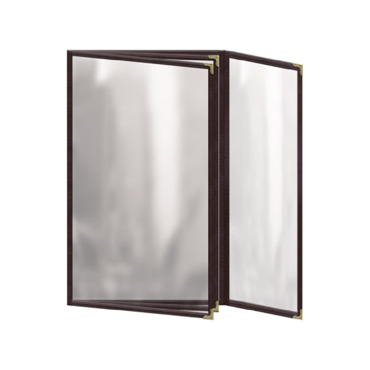 Risch, TETBQ 8.5X14-NYLON, Deluxe Sewn Nylon Menu Cover (specify color), 8-1/2" x 14", 4 page 8 view booklet, 3 full pages with 1 half page, double stitched binding, clear or matte finish vinyl (specify), metal decorative or smooth corners (specify), Made in USA (minimum order 24 each) (Packed By: 24 Each Per Case)