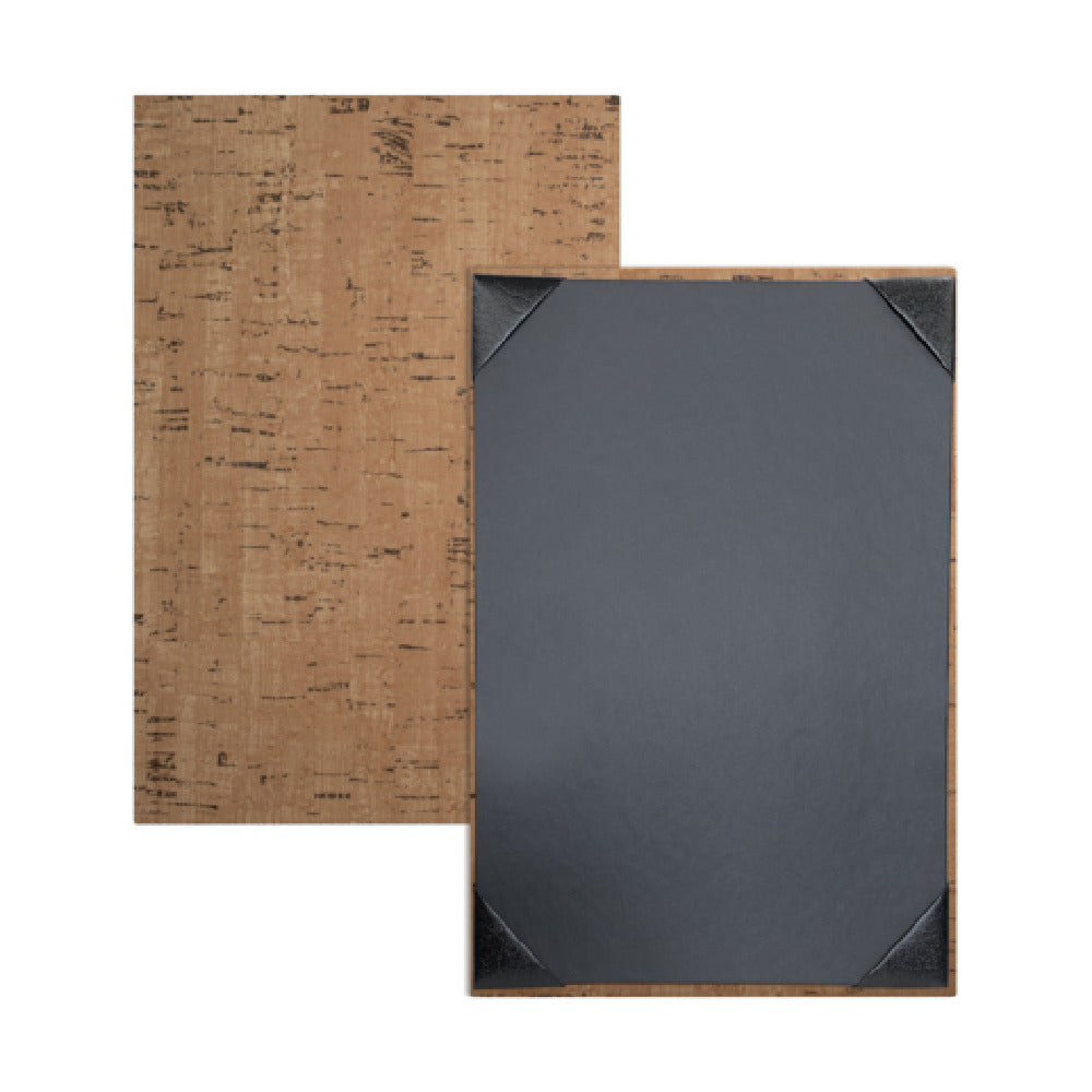 Risch, VINO-1V 5.5X8.5, Vino padded faux-cork Menu Cover (specify color), 5-1/2" x 8-1/2", single, 1 view, black card with black album style corner tabs to hold menu insert, Made in USA (minimum order 25 each) (Packed By: 25 Each Per Case)