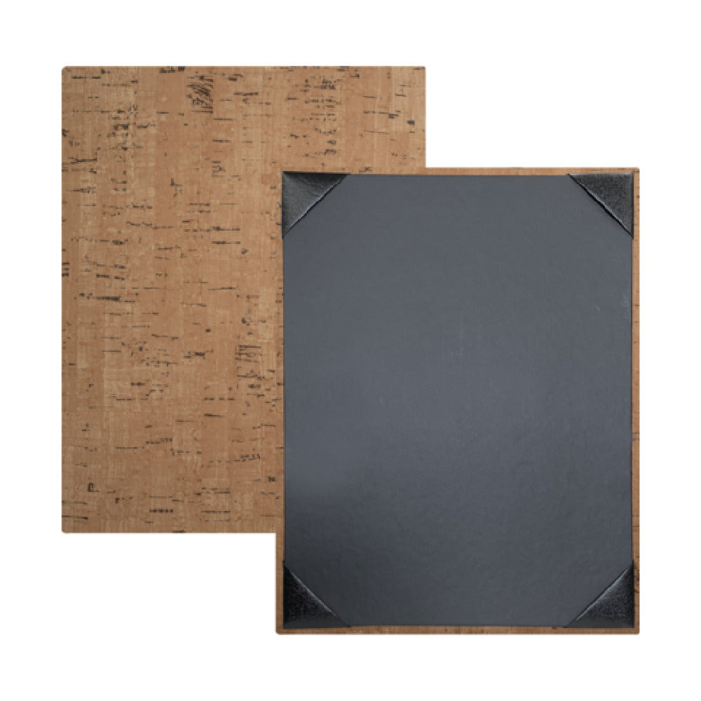 Risch, VINO-1V 8.5X11, Vino padded faux-cork Menu Cover (specify color), 8-1/2" x 11", single, 1 view, black card with black album style corner tabs to hold menu insert, Made in USA (minimum order 25 each) (Packed By: 25 Each Per Case)