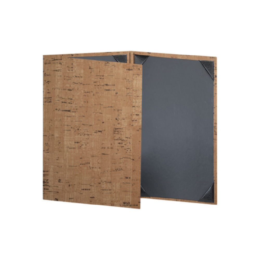 Risch, VINO-3V 5.5X8.5, Vino padded faux-cork Menu Cover (specify color), 5-1/2" x 8-1/2", fold-out, 3 view, black cards with black album style corner tabs to hold menu inserts, Made in USA (minimum order 25 each) (Packed By: 25 Each Per Case)