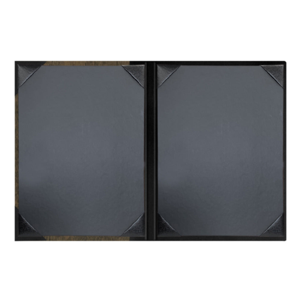 Risch, WOOD-2V 8.5X11, Authentic Wood Menu Cover (specify color), 8-1/2" x 11", double, 2 view, wood front panel, bonded tuxedo leather on spine, back, and right corners (specify color), black cards with black album style corner tabs to hold menu inserts, Made in USA (minimum order 25 each) (Packed By: 25 Each Per Case)