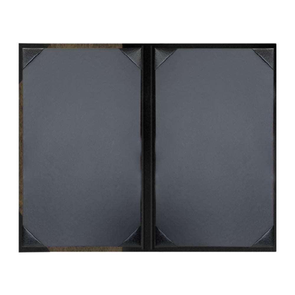 Risch, WOOD-2V 8.5X14, Authentic Wood Menu Cover (specify color), 8-1/2" x 14", double, 2 view, wood front panel, bonded tuxedo leather on spine, back, and right corners (specify color), black cards with black album style corner tabs to hold menu inserts, Made in USA (minimum order 25 each) (Packed By: 25 Each Per Case)