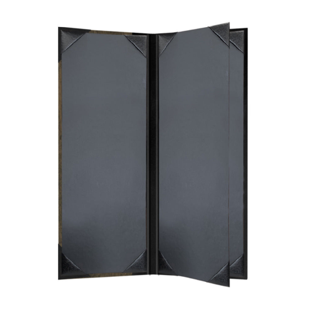Risch, WOOD-4V 4.25X11, Authentic Wood Menu Cover (specify color), 4-1/4" x 11", booklet, 4 view, wood front panel, bonded tuxedo leather on spine, back, and right corners (specify color), black cards with black album style corner tabs to hold menu inserts, Made in USA (minimum order 25 each) (Packed By: 25 Each Per Case)