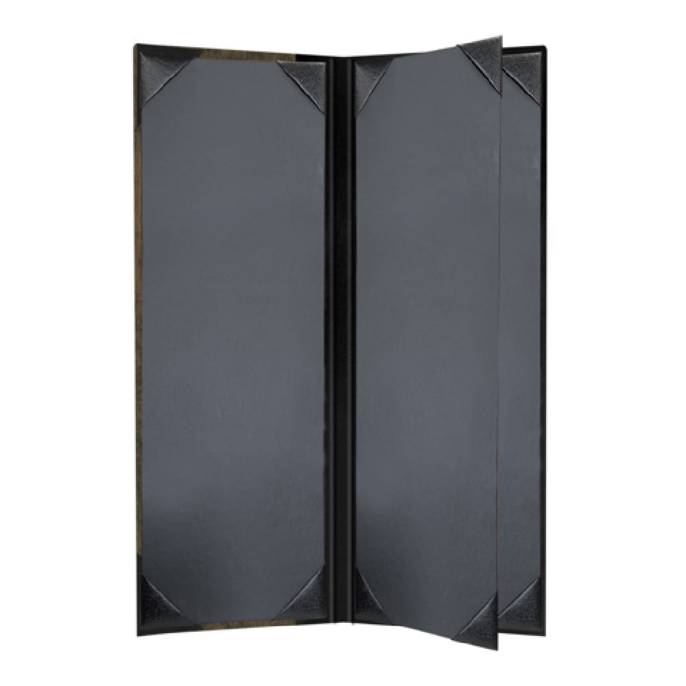 Risch, WOOD-4V 4.25X14, Authentic Wood Menu Cover (specify color), 4-1/4" x 14", booklet, 4 view, wood front panel, bonded tuxedo leather on spine, back, and right corners (specify color), black cards with black album style corner tabs to hold menu inserts, Made in USA (minimum order 25 each) (Packed By: 25 Each Per Case)