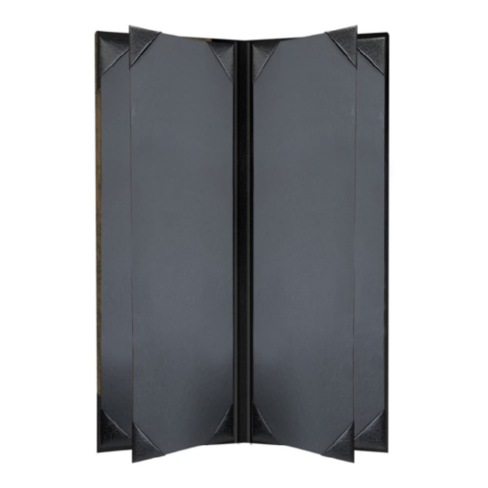 Risch, WOOD-6V 4.25X14, Authentic Wood Menu Cover (specify color), 4-1/4" x 14", booklet, 6 view, wood front panel, bonded tuxedo leather on spine, back, and right corners (specify color), black cards with black album style corner tabs to hold menu inserts, Made in USA (minimum order 25 each) (Packed By: 25 Each Per Case)
