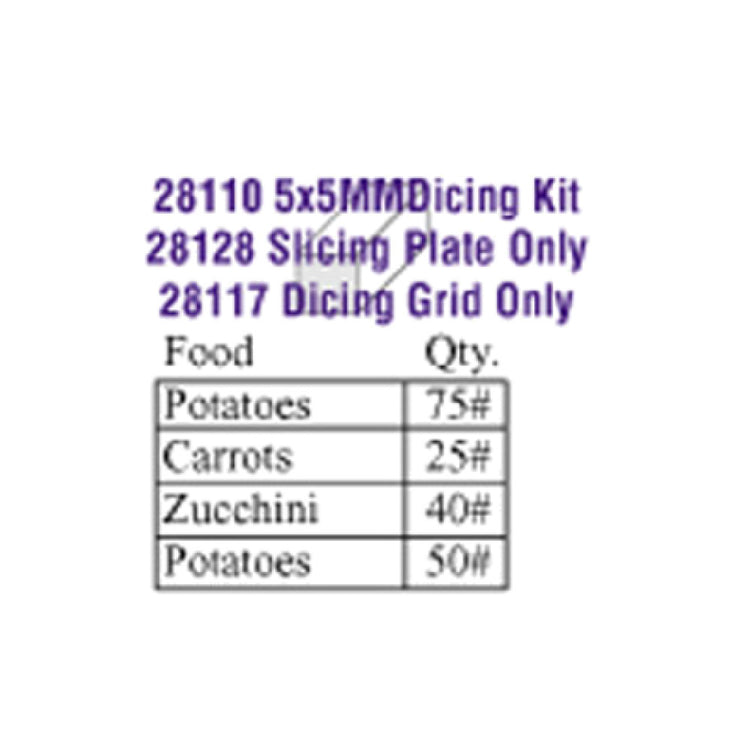Robot Coupe 28110W Dicing Kit 5 X 5mm (3/16") Includes: Slicing Disc (28128) & Dicing Grid (28117)