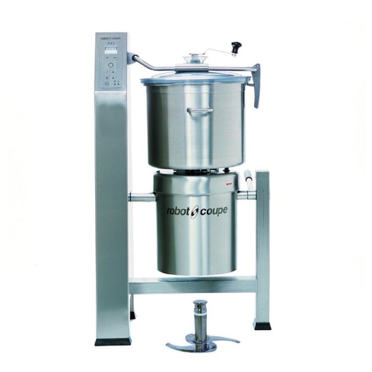 The Robot Coupe BLIXER45 Blixer® Commercial Blender/Mixer is a versatile kitchen appliance with a substantial vertical capacity of 45 liters, ideal for handling large quantities with ease. This advanced machine features a removable and tilting stainless steel cutter bowl, allowing for efficient processing and easy cleaning. The transparent polycarbonate lid offers visibility during operation, adding convenience to the blending process. The control panel is equipped with a digital 15-minute timer, ensuring precise and consistent results. The BLIXER45 includes a two-blade adjustable stainless steel Blixer® assembly, designed for optimal performance. With retractable casters, the unit can be easily moved within the workspace, enhancing flexibility and space management. Constructed with durable stainless steel, this blender/mixer is built to withstand the demands of commercial environments. It operates at two-speed settings, 1800 and 3600 RPM, powered by a robust 13.5 HP motor, offering versatility for different processing needs. Certified by cETLus and ETL-Sanitation, this product meets stringent safety and sanitation standards, making it suitable for a range of industries, such as healthcare, catering, and food processing, where high-volume, efficient, and hygienic food preparation is essential.