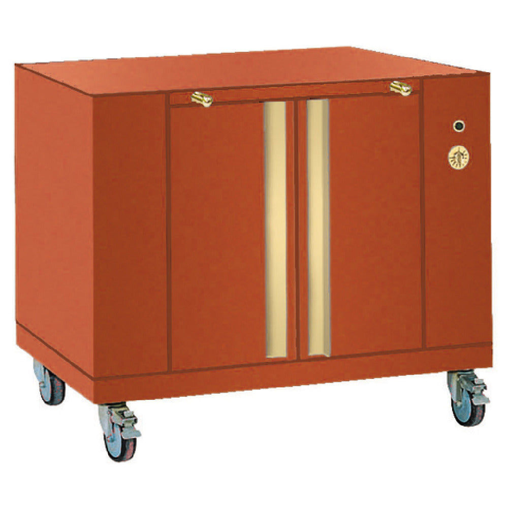 Rotisol USA, 9SCL, Base Cabinet, heated, 38" W, retractable table, one shelf inside, LUX finish- full-body finish in black porcelain enamel with chrome or brass trim (5% surcharge for other colors from the Rotisol chart), casters with brakes, 208-220v/60/1-ph, 6.2 amps, 1350 watts, 78" cord, for MasterFlame 975-2G or 975-4G, 208-220v/60/1-ph, 6.2 amps, 1.35 kW