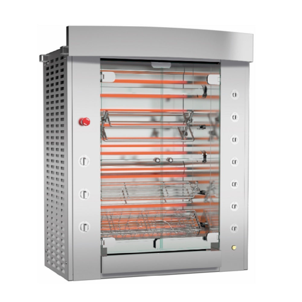 Rotisol USA, GF975-5E-SS, GrandFlame Rotisserie Oven, electric, countertop, 40-3/8" W, (5) stainless steel V-shaped spits, 10-15 chicken capacity, (5) individual spit motors, tempered glass doors, drip pan with drain plug, halogen lamp, SS finish- stainless steel, 15.4 kW, 208-230v/60/3-ph, 43 amps, cETLus, ETL-Sanitation