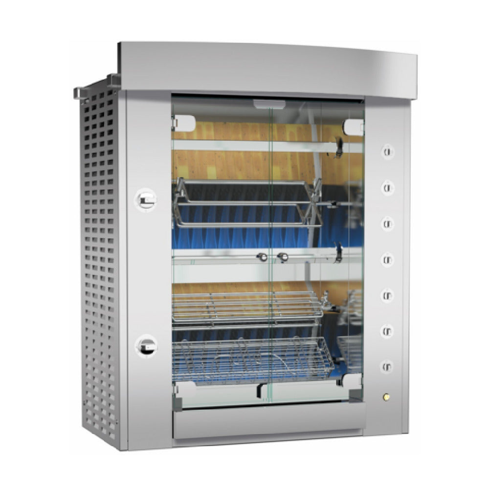 Rotisol USA, GF975-5G-SS_NAT, GrandFlame Rotisserie Oven, gas, countertop, 40-3/8" W, (5) stainless steel V-shaped spits, 10-15 chicken capacity, (5) individual spit motors, tempered glass doors, drip pan with drain plug, halogen lamp, SS finish- stainless steel, 55,000 BTU, 0.3 kW, 208-230v/60/1-ph, 1.44 amps, cETLus, ETL-Sanitation