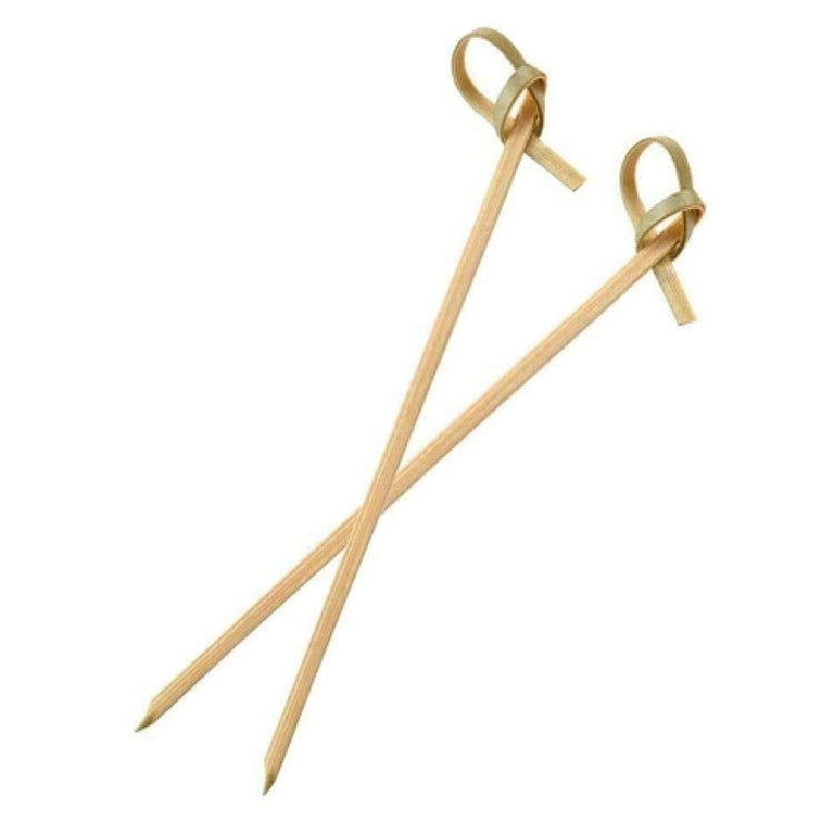 The Royal Industries BAM KNT 35 Pick 3-1/2" Flower Knot is a distinctly designed disposable utensil, crafted to enhance the presentation and utility in various culinary settings. Made from high-quality bamboo, this product is both eco-friendly and robust, catering to the growing demand for sustainable dining solutions. Each flower knot pick measures 3-1/2 inches in length, providing an ideal balance between functionality and aesthetic appeal, making it suitable for elegantly serving appetizers, fruits, and cocktails. These picks come in a convenient packaging of 50 per pack and are organized into 20 packs per box, ensuring ample supply for large-scale events or regular usage in restaurants and catering services. The artisanal flower knot design adds a touch of sophistication and uniqueness, setting it apart from conventional picks. This product is especially valuable for businesses within the hospitality and event planning industries, where presentation is key. The combination of durability, eco-friendliness, and aesthetic design makes the Royal Industries BAM KNT 35 Pick 3-1/2" Flower Knot a versatile addition to any upscale dining or event arrangement, catering to the needs of both environmentally conscious and style-focused markets.