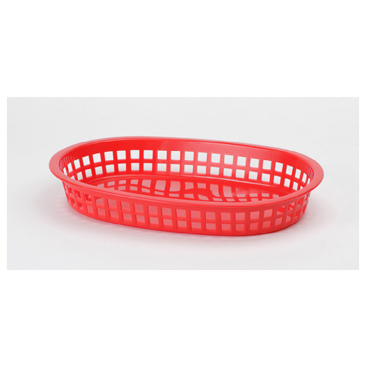 The Royal Industries DIN REB1105 Food Basket - 10" x 7" x 1-1/2" - Rectangle is a versatile and durable solution for various food service settings, designed with meticulous attention to detail. Measuring 10 inches in length, 7 inches in width, and 1-1/2 inches in height, this rectangular food basket offers ample space for serving a variety of dishes, making it suitable for restaurants, catering services, and casual dining establishments. Its flat bottom design ensures stability, allowing for an even presentation of food items. Crafted from resilient plastic, the basket is not only lightweight but also incredibly durable, providing long-lasting performance in bustling food environments. The vibrant red color adds a touch of aesthetic appeal, enhancing table settings and food presentations. Importantly, this product is dishwasher safe, facilitating easy cleaning and maintenance, thereby promoting efficiency in busy kitchens. This feature makes the Royal Industries DIN REB1105 Food Basket a practical choice for establishments that prioritize hygiene and quick turnover. The thoughtful design and practical features of this food basket cater to the diverse needs of the food service industry, providing a reliable and attractive serving solution that complements various culinary presentations.