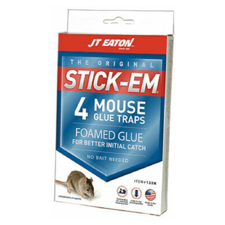 The Royal Industries JT 133N JT Eaton Stick-Em Mouse Glue Trap is a compact and efficient pest control solution, measuring 4 inches by 3 inches. This product comes with a distinctive peanut butter scent designed to attract mice, enhancing its effectiveness. Each pack contains four traps, and with 24 packs per case, users have access to a total of 96 traps, making it suitable for both individual and large-scale pest management needs. Its small size allows for versatile placement in various environments, such as homes, offices, and industrial spaces, where mice control is crucial. The product's peanut butter scent is a unique feature that differentiates it in the market, appealing specifically to customers who prefer non-toxic and non-invasive pest solutions. Royal Industries has crafted this item to meet the needs of different market segments, offering an accessible and straightforward method for maintaining hygiene and safety in diverse settings. The JT 133N is tailored to address both residential and commercial demands for effective mouse trapping solutions, emphasizing its practical application and convenience by providing a bulk quantity for repeated use or widespread deployment.