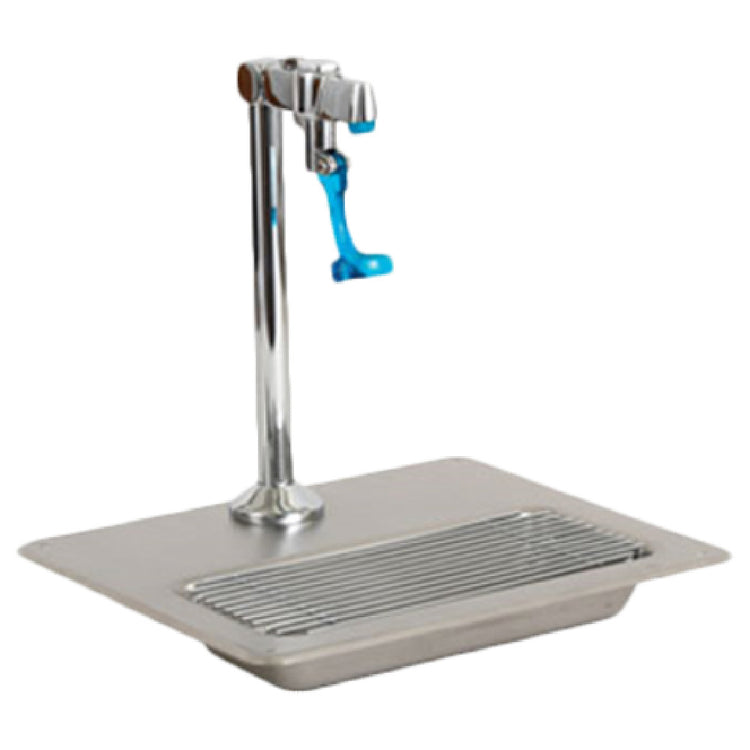 The Royal Industries ROY 304 WS Water Station is a compact and efficient unit designed for optimal water dispensing in various commercial settings. Measuring 10-1/2 inches in width and 12-1/2 inches in length, it features a stainless steel drip pan that prevents spills and maintains cleanliness. This water station is equipped with a push back glass filler, providing a convenient and efficient solution for quickly filling glasses. The inclusion of a coupling nut and a 1/4-inch copper sweat tailpiece ensures a secure and reliable installation, accommodating different plumbing configurations with ease. The grid drain, with a diameter of 2-1/4 inches, allows for efficient water drainage, supported by a 1-1/4 inch by 4 inch 17-gauge tail piece, which ensures durability and robustness. Constructed from 18-gauge stainless steel, the ROY 304 WS water station is built to withstand the rigors of daily use in busy environments such as restaurants, cafes, and catering services. Its durable construction, combined with a sleek design, makes it a valuable asset for any food service operation requiring efficient and reliable water dispensing solutions. This water station's compact size and durable materials make it suitable for industries prioritizing sanitation and efficiency.