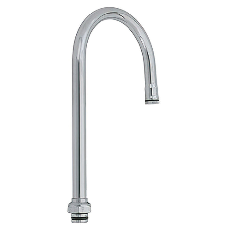 The Royal Industries ROY 6 GS Add-A-Faucet 6" Swing Gooseneck Spout Chrome Finish is a versatile component designed for various professional kitchen environments. Featuring a 6-inch swing gooseneck spout, this faucet adds a level of convenience and flexibility, allowing for easy maneuverability and accessibility during kitchen tasks. The chrome finish not only enhances the aesthetic appeal but also offers a layer of durability and resistance to corrosion, ensuring longevity in high-demand settings. This product is particularly suited for those in the food service industry who require reliable and adaptable plumbing solutions. The swing gooseneck spout design provides ample clearance and flexibility, making it ideal for filling large pots or containers, an essential feature for busy kitchens. Its straightforward design allows for easy integration into existing sink setups, offering a seamless solution for enhancing kitchen efficiency. With its focus on practicality and robust construction, the Royal Industries ROY 6 GS caters to diverse market segments, from restaurant chains and catering businesses to hospitality venues, emphasizing its value across various professional settings.