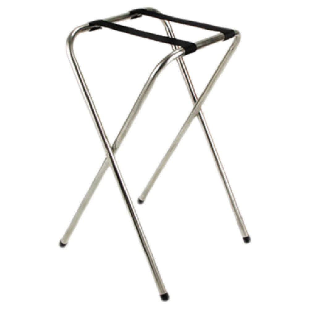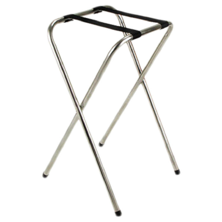 The Royal Industries ROY 774 Tray Stand 32"H Standard is a versatile and durable piece designed for professional dining environments, particularly suited for restaurant, hotel, and catering services. Standing at a height of 32 inches, this tray stand features a sturdy chrome construction, which not only ensures longevity but also offers a sleek, polished appearance that complements various interior decors. The standard design of the ROY 774 is engineered to provide reliable support for serving trays, enhancing efficiency during meal service by allowing staff to safely and conveniently hold large trays at table height. This makes it an invaluable tool in busy settings where quick and efficient service is paramount. The chrome finish not only adds to its aesthetic appeal but also allows for easy cleaning and maintenance, ensuring the stand remains in top condition even with frequent use. Its robust construction makes it suitable for both indoor and outdoor use, catering to diverse operational needs within the hospitality industry. Designed with practicality and durability in mind, the Royal Industries ROY 774 Tray Stand embodies a blend of functionality and style, making it an essential accessory for any establishment committed to delivering exceptional dining experiences.