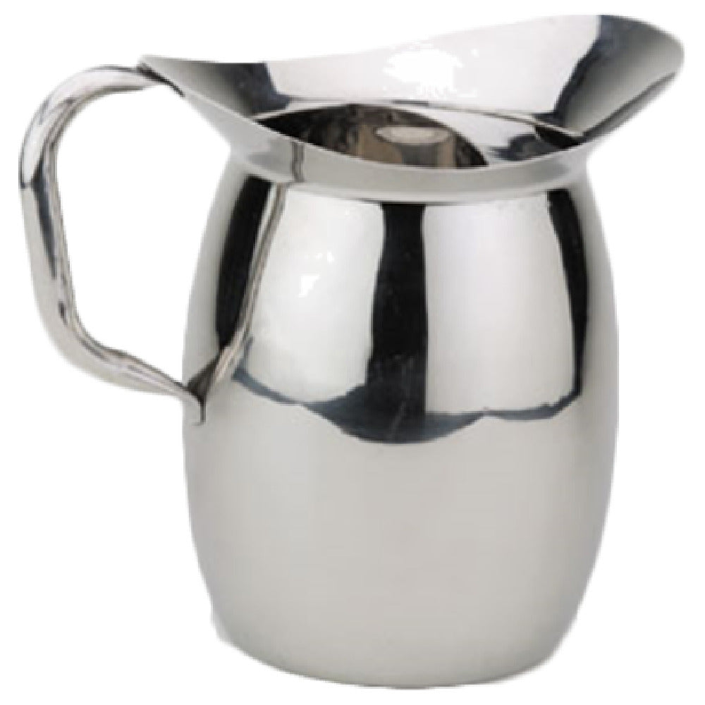 The Royal Industries ROY B 605 Water Pitcher is a bell-shaped, expertly crafted beverage container with a generous capacity of 3 quarts, making it an essential addition to any kitchen or dining setting. This pitcher is designed with an ice guard, ensuring a smooth pour while keeping ice cubes contained within the vessel. Its tubular c-handle offers a comfortable and secure grip, facilitating easy handling and pouring for users of all ages. Constructed from high-quality stainless steel, the ROY B 605 Water Pitcher not only provides a sleek and modern aesthetic but also ensures durability and resistance to rust and corrosion, ideal for both home and professional use. This water pitcher is versatile enough to cater to a variety of segment markets, including restaurants, cafes, hotels, and catering services, where large-volume liquid serving solutions are a necessity. Its elegant design complements a wide range of table settings, from casual to formal occasions, while its practical features make it a reliable choice for efficient beverage service. The Royal Industries ROY B 605 Water Pitcher embodies a blend of functionality and style, meeting the needs of both everyday use and special events with ease.