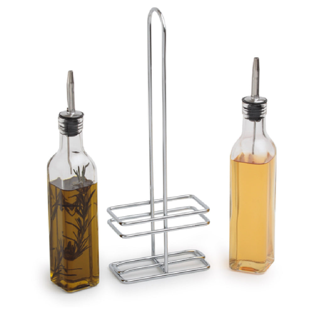 The Royal Industries ROY C 08 Cruet - 8 Oz. Square Glass With Stainless Steel Lid is a sophisticated addition to any dining establishment, designed to combine durability with elegance. This cruet is crafted from high-quality square glass, providing a clear view of its contents, while the 8-ounce capacity makes it perfect for storing a variety of condiments, oils, or vinegars. Its sleek design is complemented by a stainless steel lid that ensures a secure seal, maintaining the freshness of the contents. The use of stainless steel not only enhances the product's aesthetic appeal but also contributes to its sturdiness and resistance to corrosion. The square shape of the glass adds a modern touch, making it suitable for upscale restaurants, cafes, and home dining settings alike. The Royal Industries ROY C 08 Cruet is versatile, fitting seamlessly into a range of culinary environments where presentation and practicality are key. Its compact size makes it easy to handle and store, while the combination of glass and stainless steel materials ensures it meets the demands of high-use settings. This cruet represents a smart choice for those seeking a blend of functionality and style in their tableware solutions.