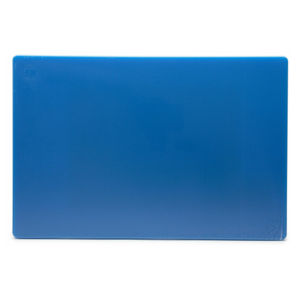 The Royal Industries ROY CB 1520 BL Cutting Board is a versatile kitchen essential measuring 15 inches by 20 inches with a 1/2-inch thickness, designed from high-density polyethylene plastic. This particular model, distinguished by its blue color, stands out for its durability and resilience, making it an ideal choice for both commercial and home kitchens. The high-density polyethylene construction ensures a sturdy and non-porous surface that is resistant to moisture, stains, and odors, providing a reliable platform for a wide array of food preparation tasks. Approved by NSF, this cutting board adheres to strict public health standards, emphasizing its suitability for hygienic food handling. Its generous size allows for ample cutting space, accommodating everything from small fruits to large cuts of meat. The 1/2-inch thickness provides a solid yet forgiving surface that helps protect knife edges while delivering a stable cutting experience. This cutting board's high-density material can withstand the rigors of daily use in busy food service environments, making it an excellent tool for chefs, caterers, and culinary professionals. Its distinct blue hue can also be utilized in color-coded systems to prevent cross-contamination, enhancing food safety protocols in professional kitchens.