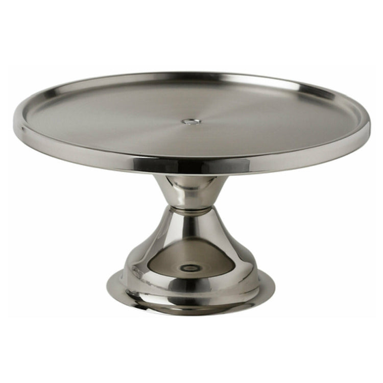 The Royal Industries ROY CKS 1 Cake Stand 12" Dia.- Chrome is a meticulously designed display piece, ideal for both commercial bakeries and home bakers seeking a touch of elegance in their presentation. With a diameter of 12 inches, this cake stand provides ample space to showcase a variety of cake sizes, enhancing their visual appeal. Constructed from chrome, the stand offers a sleek and polished finish that adds a modern and sophisticated touch to any setting. The chrome material not only enhances its aesthetic appeal but also ensures durability and resistance to corrosion, making it suitable for long-term use in high-demand environments. The product is designed to be knocked down, which allows for convenient storage and transportation, making it a practical choice for caterers and event planners who require mobility and ease of setup. It's important to note that the cover is sold separately, providing flexibility for users to choose the appropriate cover as per their specific needs. The Royal Industries ROY CKS 1 Cake Stand is a versatile and valuable addition to any bakery or home kitchen, combining functionality with a stylish design to elevate cake presentations across a range of culinary settings.