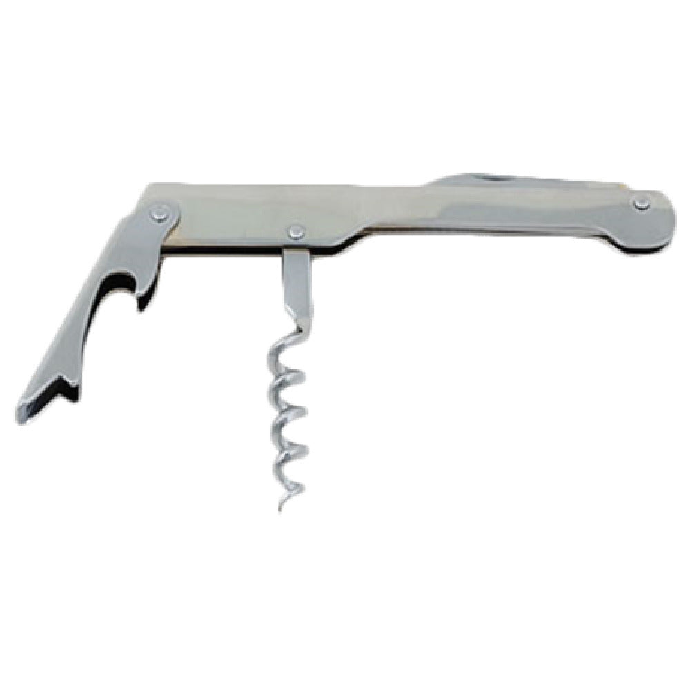 The Royal Industries ROY CS WTR Waiters Corkscrew with Knife - Chrome is an essential tool designed for the hospitality industry, combining functionality and style. This waiter's corkscrew is crafted with a sleek chrome finish, which not only adds a touch of elegance but also ensures durability and resistance to corrosion. The product features an integrated knife, providing versatility and convenience to professional waitstaff who require a reliable multipurpose tool during service. The compact design of the ROY CS WTR makes it easy to store and carry, fitting comfortably in a pocket or apron, ideal for busy restaurant environments. Whether catering to bustling cafes or upscale dining establishments, this corkscrew offers a seamless blend of utility and aesthetic appeal, meeting the demands of various market segments within the industry. With its well-engineered design, the Royal Industries ROY CS WTR Waiters Corkscrew is a testament to quality craftsmanship, serving as a valuable asset for food service professionals who prioritize efficiency and sophistication in their daily operations.