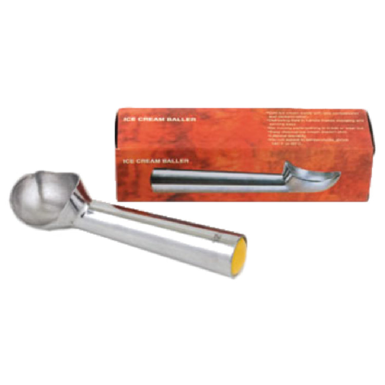 The Royal Industries ROY D 24 SD Ice Cream Baller #241-1/2 Oz. Sealed In Defrosting Liquid is an innovative tool designed for precision and efficiency in crafting perfect portions of ice cream. This #24 size baller has a capacity of 1-1/2 ounces, making it suitable for serving consistent scoop sizes, ideal for both commercial and home use. Constructed from durable cast aluminum, it ensures longevity and reliability, providing a professional touch to any culinary establishment. One of its unique features includes being sealed in defrosting liquid, which aids in maintaining optimal temperature, ensuring that each scoop is smooth and easily released. The vibrant red cap not only adds a dash of color to your kitchen tools but also serves as a functional component, enhancing grip and control during use. This product caters to diverse market segments within the food and hospitality industry, from professional chefs in high-paced environments to ice cream enthusiasts at home, by providing a dependable and precise scooping solution. The Royal Industries ROY D 24 SD Ice Cream Baller combines practicality with quality, making it a valuable addition to any kitchen aiming for excellence in dessert presentation.