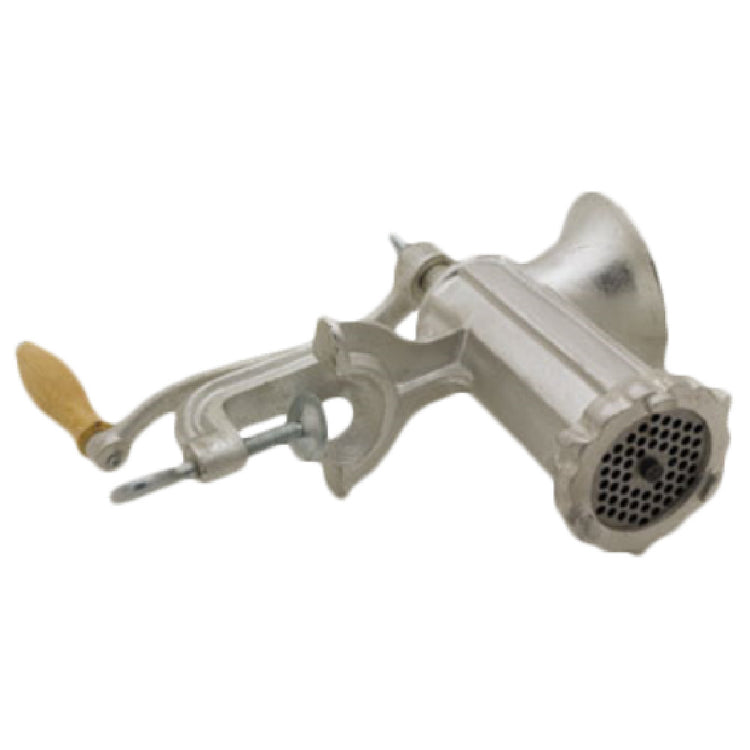 The Royal Industries ROY HC 10 Hand Food Grinder is a versatile manual kitchen tool designed for efficient food processing, catering to various culinary needs. With its vice clamp mount, it securely attaches to countertops, ensuring stability during use. Constructed from heavy-duty cast iron, this grinder is built for durability and long-lasting performance, making it a reliable addition to any professional or home kitchen. The tin-plated finish offers resistance to corrosion, enhancing its lifespan even with regular use. This hand food grinder includes a knife and plate, enabling precise and consistent grinding, suitable for various ingredients and recipes. The ROY HC 10 is not only ideal for chefs and culinary professionals seeking robust equipment but also for home cooks who appreciate traditional, hands-on food preparation methods. Its manual operation means it can be used in locations without electricity, broadening its applicability across different market segments, including catering and outdoor events. The Royal Industries ROY HC 10 Hand Food Grinder stands out for its combination of rugged construction, practical features, and adaptability, making it a valuable tool for those who prioritize quality and performance in food processing equipment.