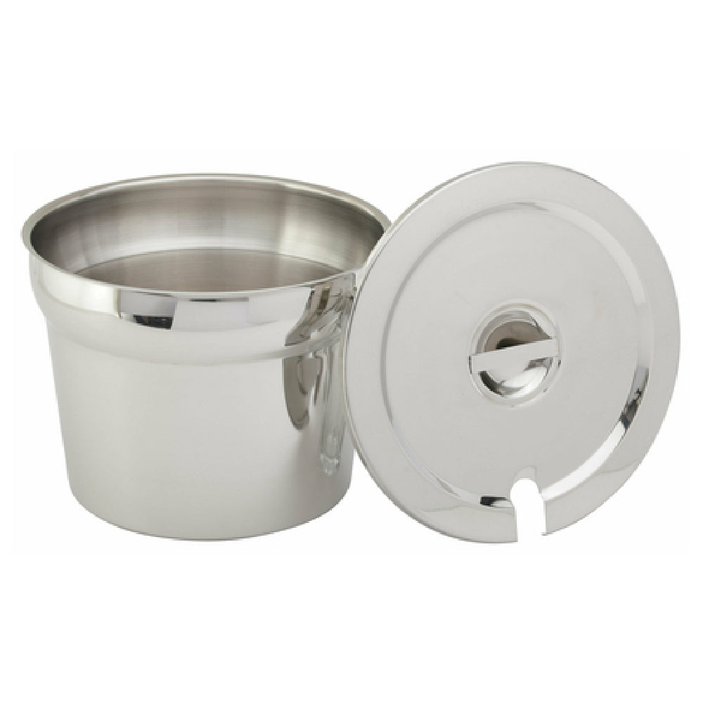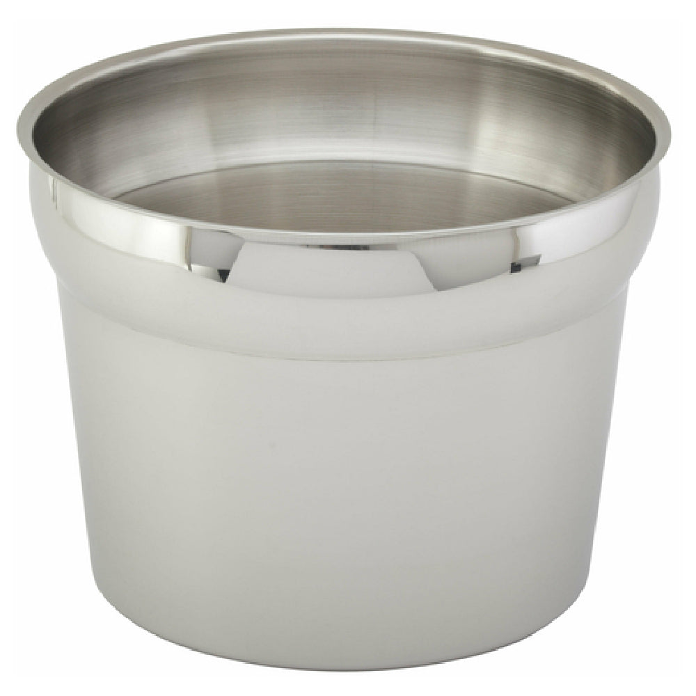 The Royal Industries ROY IST 10 1/2 Vegetable Inset 11 Qt. 10-1/2" Dia. is a versatile piece of cookware designed to meet the demanding needs of commercial kitchens. With an impressive 11-quart capacity, this inset is perfect for large-volume food preparation. The product measures 10-1/2 inches in diameter and 8-1/4 inches in depth, providing ample space for storing and cooking a variety of vegetables or other ingredients. Crafted from high-quality stainless steel, it ensures durability and long-lasting performance, essential for withstanding the rigors of daily kitchen use. This robust material also contributes to its resistance against rust and corrosion, maintaining its pristine appearance and functionality over time. The Royal Industries Vegetable Inset is particularly valuable for restaurants, catering services, and institutional kitchens that require reliable and efficient equipment. Its design accommodates a wide range of cooking methods, making it adaptable to various culinary applications. Additionally, the stainless steel construction facilitates easy cleaning and maintenance, an important consideration for maintaining hygiene standards in any food service operation. This product stands out as a dependable choice for chefs and kitchen professionals seeking a high-capacity, durable solution for their vegetable cooking and preparation needs.