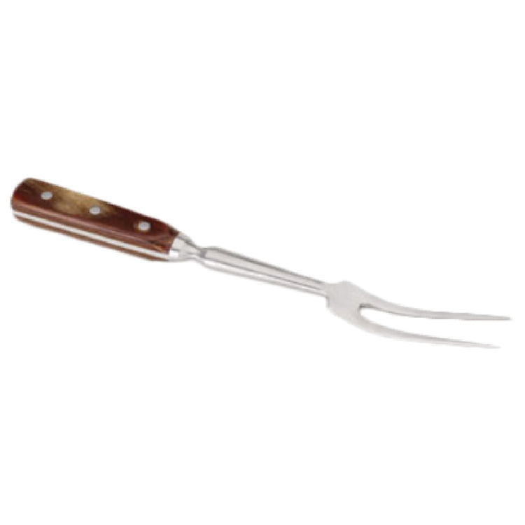 The Royal Industries ROY KF HD 14 Kitchen Fork is a meticulously designed culinary tool, measuring 14 inches in length, that caters to the heavy-duty needs of professional chefs and home cooking enthusiasts alike. This kitchen fork is crafted with forged stainless steel tines, which provide exceptional strength and durability, making it ideal for handling a variety of tasks, from lifting large cuts of meat to steadying ingredients while carving. The robust construction ensures longevity, even under rigorous use in bustling commercial kitchens. The fork features a wood handle, offering not only an ergonomic grip for comfortable use but also an aesthetic appeal that complements the elegance of stainless steel. The combination of durable materials and thoughtful design makes the Royal Industries ROY KF HD 14 Kitchen Fork a versatile addition to any kitchen, suitable for both industrial settings and personal culinary adventures. Its heavy-duty build is specifically tailored to meet the demands of different market segments, seamlessly integrating into diverse kitchen environments for enhanced performance and reliability.