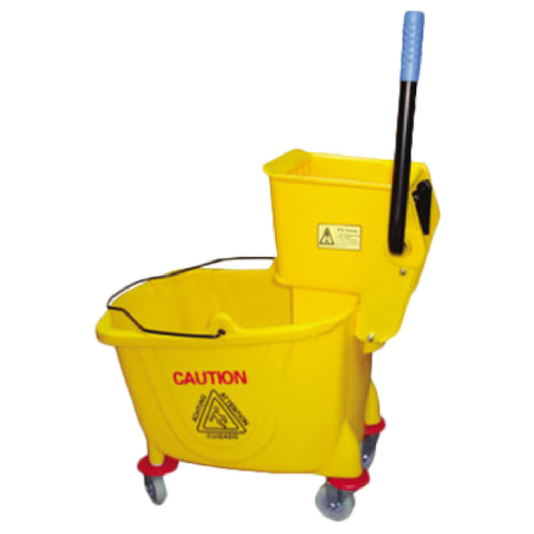 The Royal Industries ROY MBKY 9 W Wringer Replacement is specifically engineered for seamless compatibility with the ROY MBKY 9, ensuring that businesses in the janitorial and sanitation industry can maintain optimal functionality of their mop bucket systems. This replacement wringer is a precision-designed component that plays a crucial role in the efficient wringing of mop heads, enhancing the cleaning process by ensuring excess water is effectively removed. Its robust construction reflects Royal Industries' commitment to quality and durability, making it a reliable choice for high-traffic environments that demand rigorous cleaning routines. Designed to fit perfectly with the ROY MBKY 9, this replacement part upholds the ergonomic and operational standards of the original equipment, ensuring that users can continue to leverage the full potential of their cleaning systems. The Royal Industries ROY MBKY 9 W Wringer Replacement represents an essential maintenance solution for sectors such as hospitality, healthcare, and educational facilities, where cleanliness is paramount, ensuring that their cleaning apparatus remains in perfect working order without interruption. This replacement part underscores the importance of maintaining high standards of hygiene and efficiency in professional cleaning operations.