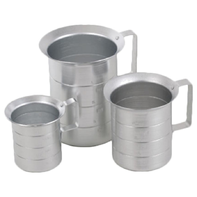 The Royal Industries ROY MEAS 2 Liquid Measure 2 Qt. Graduated Markings is a precision tool crafted for professionals who require accurate liquid measurements in their culinary or industrial applications. This liquid measure, with a capacity of 2 quarts, is constructed from durable aluminum, ensuring longevity and resistance to corrosion. One of its standout features is the graduated markings, which are meticulously etched onto the surface, allowing for precise measurements and easy readability. This makes it an indispensable tool for chefs, bartenders, and laboratory technicians who demand accuracy in their respective fields. The lightweight nature of the aluminum material also facilitates easy handling and pouring, reducing the risk of spillage and ensuring efficiency. Its robust build quality and clear measurement indicators cater to a variety of market segments, from high-volume commercial kitchens to scientific research facilities, where precise liquid measurement is crucial. The Royal Industries ROY MEAS 2 is not just a measuring tool but a reliable partner in environments where precision and durability are paramount. Its design reflects a commitment to quality and functionality, making it a valuable investment for professionals who depend on accurate liquid measurement for their operations.