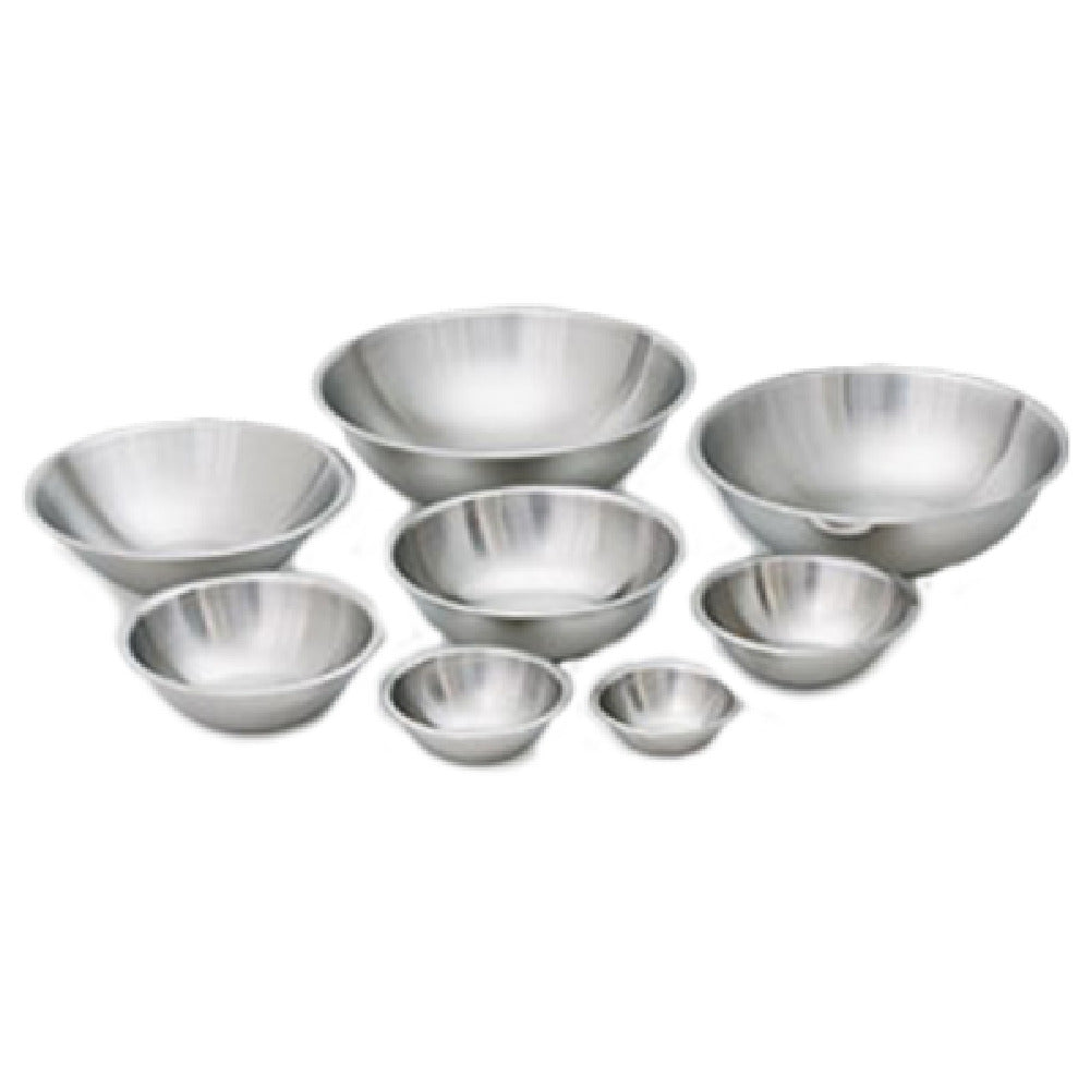 The Royal Industries ROY MIXBL HD 5 Mixing Bowl is an essential kitchen tool featuring a 5-quart capacity and a precise 10-1/4 inch diameter, making it optimal for a variety of culinary tasks. This bowl stands out with its heavy-duty construction, ensuring durability and reliability in demanding kitchen environments. It is crafted from 22 gauge (.65mm) stainless steel, combining lightweight design with robust strength. The interior of the bowl boasts a brushed finish, enhancing its resistance to scratches and maintaining its pristine condition through extensive use. Meanwhile, the exterior is polished to a sleek finish, offering an aesthetically pleasing look that complements any kitchen decor. This mixing bowl is particularly valuable for professional chefs, home cooks, and food service establishments that prioritize quality and longevity in their kitchenware. Its sturdy build and high-capacity size make it a versatile addition to any kitchen, capable of handling a wide range of mixing, prepping, and serving tasks. Whether in a bustling restaurant kitchen or a cozy home setting, the Royal Industries ROY MIXBL HD 5 Mixing Bowl meets the standards of excellence and versatility required in the culinary industry.