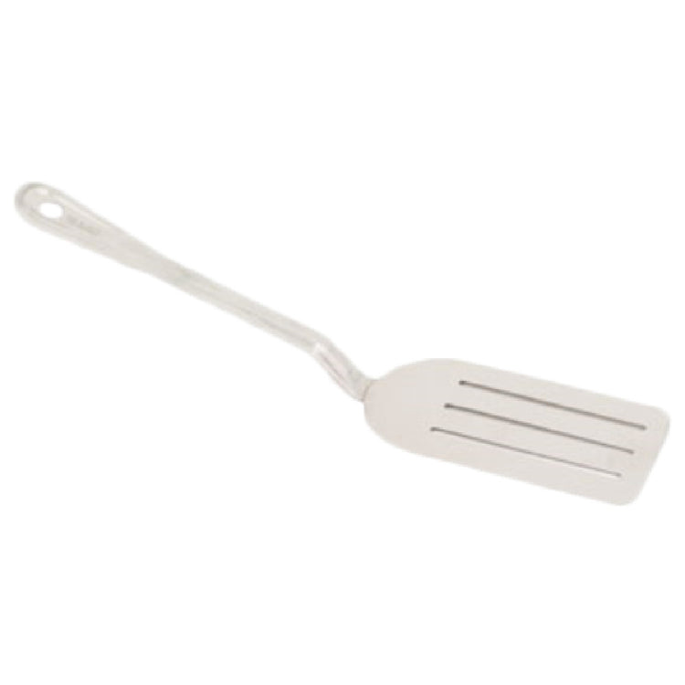 The Royal Industries ROY PANT 14 S Pancake Turner is a precision-engineered kitchen tool designed to meet the demands of professional chefs and culinary enthusiasts alike. Measuring 14-1/2 inches in length, it provides an optimal reach for effortless flipping and turning of pancakes and other delicate foods. The blade, sized at 6 inches by 3 inches, is both slotted and flexible, allowing for superior control and maneuverability when handling various types of ingredients. Constructed from high-quality stainless steel, this pancake turner ensures durability and resistance to corrosion, making it a reliable tool for frequent use in busy kitchen environments. The slotted design enhances its functionality by allowing excess oils and liquids to drain away, ensuring healthier cooking results. Ideal for diverse market segments such as restaurants, cafes, and catering services, the Royal Industries ROY PANT 14 S Pancake Turner combines practical design with robust materials to deliver exceptional performance and longevity. Its ergonomic construction caters to the needs of professionals seeking efficiency and quality in their kitchen utensils.