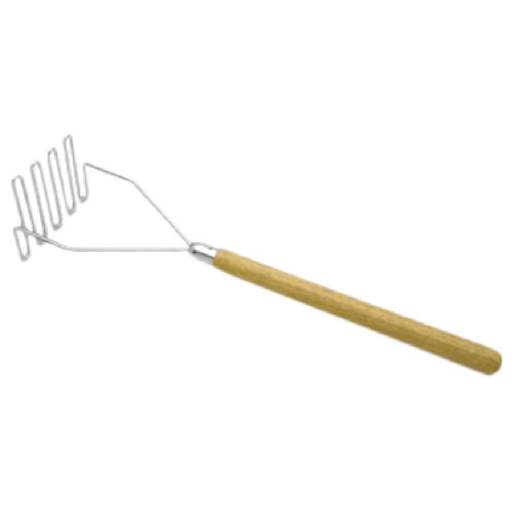 The Royal Industries ROY PM SQ 24 Potato Masher is a precision kitchen tool designed for both commercial and home culinary environments where efficiency and durability are paramount. Measuring 24 inches in length, this potato masher is equipped with a substantial 4-1/2 inch by 4-1/2 inch square head, strategically fashioned to ensure thorough mashing with minimal effort. Its heavy wire base contributes to the robustness and longevity of the tool, making it a reliable choice for high-volume food preparation settings. The chrome-plated finish not only adds a sleek, professional appearance but also provides resistance against rust and corrosion, ensuring the tool's durability over time. A wooden handle complements the metal components, offering a comfortable and secure grip for prolonged use without hand fatigue. This tool is particularly valuable in restaurant kitchens, catering services, and large-scale food production facilities where consistency and quality are crucial. The Royal Industries ROY PM SQ 24 Potato Masher brings together practical design and sturdy construction, making it an essential utensil for those seeking efficiency and dependability in their potato mashing tasks.