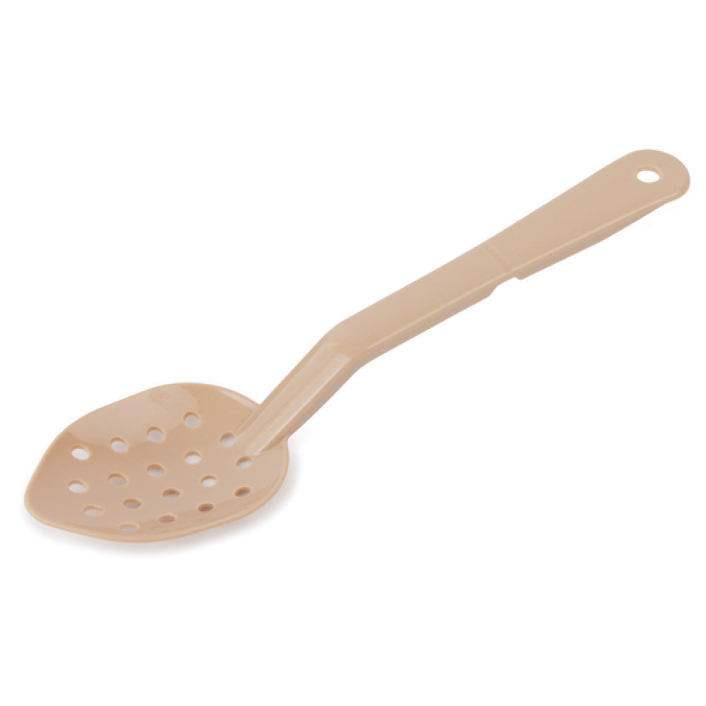 The Royal Industries ROY PSS 11 P BGE Serving Spoon 11" Perforated is a versatile and practical tool designed for a variety of food service applications. Measuring 11 inches in length, this serving spoon is crafted from durable polycarbonate material, ensuring a lightweight yet robust construction. Its beige color provides a neutral aesthetic that complements any kitchen or dining setting. The perforated design of the spoon serves a dual purpose: it efficiently drains excess liquids from foods, making it ideal for serving vegetables, pasta, and other dishes while maintaining their quality. This feature is particularly valuable in professional kitchens, buffets, or catering services where presentation and portion control are critical. The polycarbonate composition makes the spoon resistant to breakage and capable of withstanding the rigors of high-volume use. Its ergonomic design ensures comfortable handling during prolonged use, reducing strain for kitchen staff. The Royal Industries ROY PSS 11 P BGE Serving Spoon is an essential tool for chefs and food service professionals who require a reliable, efficient utensil that combines functionality with durability. Its thoughtful design and high-quality materials make it a great addition to any kitchen, enhancing operational efficiency and food presentation.