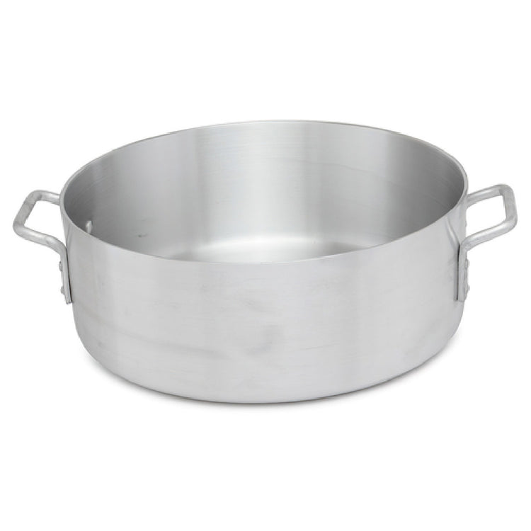 The Royal Industries ROY RBAZ 15 Brazier - 15 qt. without cover is a medium-weight aluminum cooking vessel designed for both professional and home kitchens. With a substantial 15-quart capacity, this brazier is ideal for preparing large quantities of food, making it especially useful for catering businesses, restaurants, and large family gatherings. The brazier is crafted from 4mm thick aluminum, which ensures even heat distribution and efficient cooking, reducing the likelihood of hotspots that can burn food. The riveted handles provide superior stability and support when moving the brazier, even when it's filled to capacity. Although this model does not include a cover, its open-top design is perfect for browning, braising, and reducing sauces, offering culinary versatility. Additionally, this brazier is NSF certified, signifying that it meets strict standards for public health protection and is suitable for commercial use. The Royal Industries ROY RBAZ 15 Brazier's combination of durability, size, and professional-grade construction makes it a valuable addition to any kitchen environment, offering chefs and home cooks alike a reliable tool for a variety of cooking techniques.
