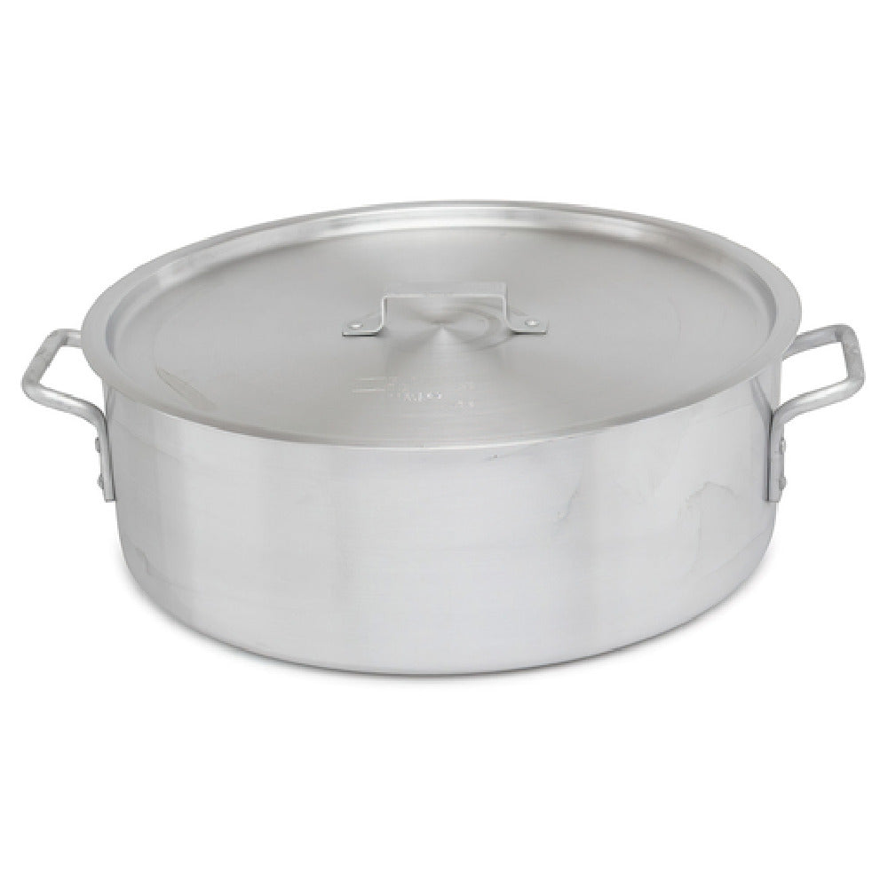 The Royal Industries ROY RBAZ 28 Brazier 28 Qt. Without Cover is a medium-weight, versatile cooking tool designed for professional kitchens that require durability and efficiency. Crafted from 4mm thick aluminum, this brazier ensures even heat distribution for consistent culinary results, making it essential for tasks such as browning meats and slow simmering stews. Its 28 qt. capacity is ideally suited for large-scale food preparation, accommodating the demands of high-volume kitchens in restaurants, catering businesses, and institutional food services. The brazier features riveted handles, providing a secure and sturdy grip for safe maneuvering, even when fully loaded. Meeting stringent safety and quality standards, this product is NSF certified, guaranteeing its suitability for commercial food service environments. The Royal Industries ROY RBAZ 28 Brazier stands out for its combination of practicality and robust construction, fulfilling the diverse needs of chefs and kitchen staff across the industry. With its high-capacity and reliable build, it serves as a valuable component for any culinary establishment that prioritizes performance and longevity in its cookware.