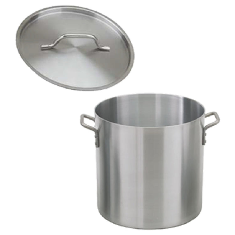 The Royal Industries ROY RSPT 50 H Stock Pot - 50 Qt. Straight Sided is a professional-grade kitchen essential designed for those who require robust cooking solutions. This stock pot boasts a generous 50-quart capacity, making it suitable for large-scale meal preparations in commercial kitchens, restaurants, and catering operations. Constructed from heavy-weight aluminum, it ensures excellent heat conduction and durability, perfect for consistent cooking results. The pot’s 6mm thickness adds to its strength, ensuring it withstands the rigors of frequent use while maintaining even heating. It features straight sides that not only maximize cooking space but also facilitate easy stirring and cleaning. The riveted handles provide secure handling, enhancing safety during transportation and use, even when the pot is full. Although it does not include a lid, this stock pot is versatile enough to be paired with various covers that fit its dimensions. Certified by NSF, it meets high standards for public health protection, making it a reliable choice for professional settings. Whether used in a bustling restaurant or a large-scale event, the Royal Industries ROY RSPT 50 H Stock Pot efficiently caters to the needs of chefs who value quality and performance in their culinary tools.