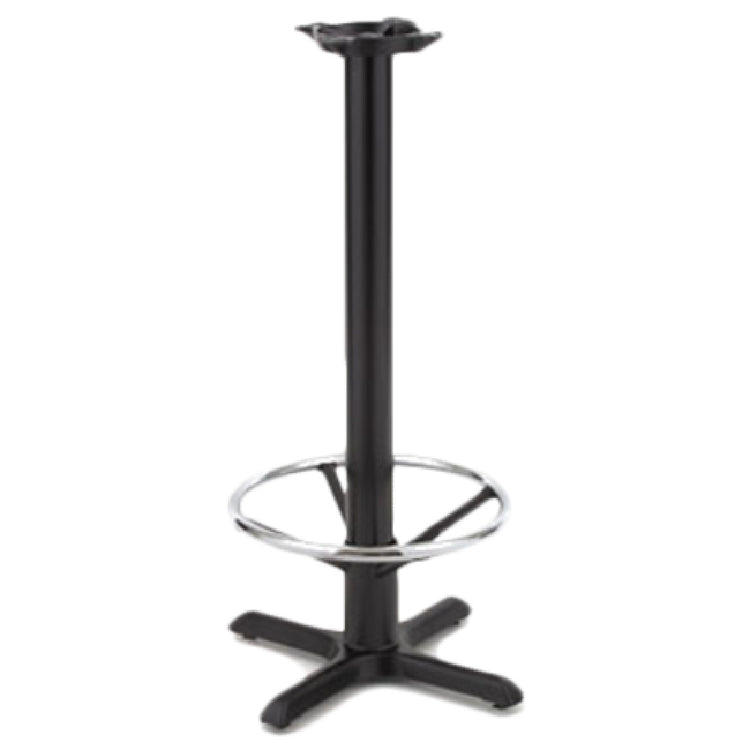 The Royal Industries ROY RTB 142 Stand-Up Disco Table Base is engineered with precision to cater to various industry demands, offering a versatile and reliable solution for table support. Its 22" x 22" base spread is specifically designed to accommodate tables ranging from 24" to 30" in size. This robust table base features a chrome wagon wheel foot rest, providing not only aesthetic appeal but also added comfort for users standing around the table. Constructed with a cast iron spider, it ensures durable and stable support for any tabletop. The table base includes four nickel-plated glides, allowing for smooth and easy adjustments across different floor surfaces. The 3" x 37-1/2" black steel column provides a sturdy backbone for the table, ensuring long-lasting performance in even the most demanding environments. These features make the Royal Industries ROY RTB 142 an ideal choice for a wide range of applications, from bustling bars and restaurants to vibrant event spaces and social venues. Its combination of strong materials and smart design elements ensures this table base delivers both functionality and style, enhancing the user experience across different settings. Whether for commercial or private use, this table base offers a reliable and elegant underpinning for any tabletop.